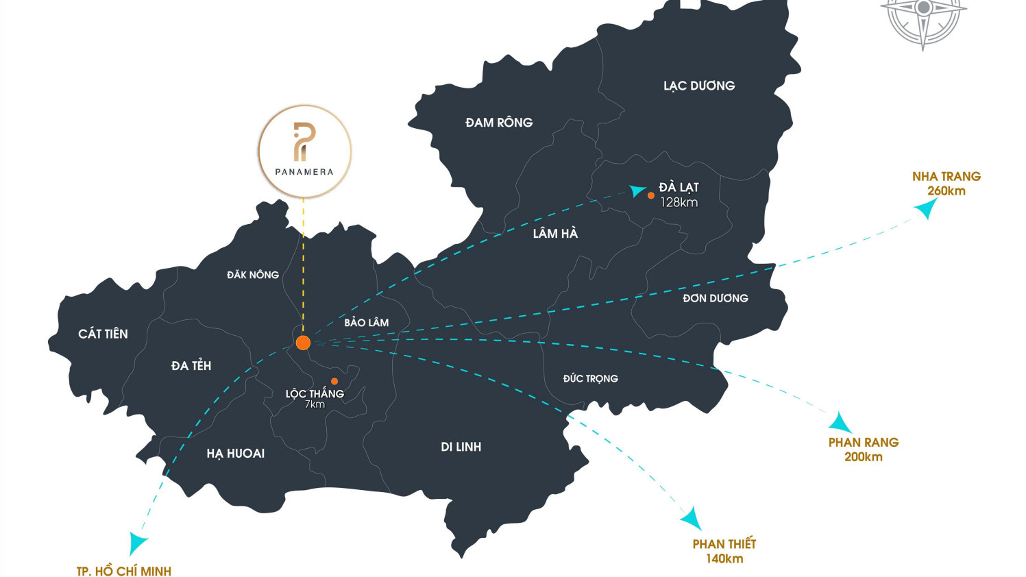 Panamera được bao quanh bởi nhiều tuyến đường huyết mạch, nối mạch phồn vinh đến các khu vực. Từ Tp Bảo Lộc, chỉ mất khoảng 20 phút di chuyển đã có thể chạm đến không gian tuyệt hảo của Panamera.